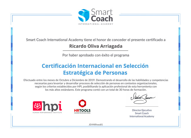 Ingeniero (e) Administración de Empresas, Diplomado en gestión certificado como Coach Integrativo (IAC) miembro de la PCA, Diplomado en Gestión de Personas¸ Diplomado Internacional en Coaching Ejecutivo, junto con especializaciones en áreas de la administración tales como RSE, Selección Estrategia de Personas, Derecho laboral, Liderazgo y Equidad de Género.